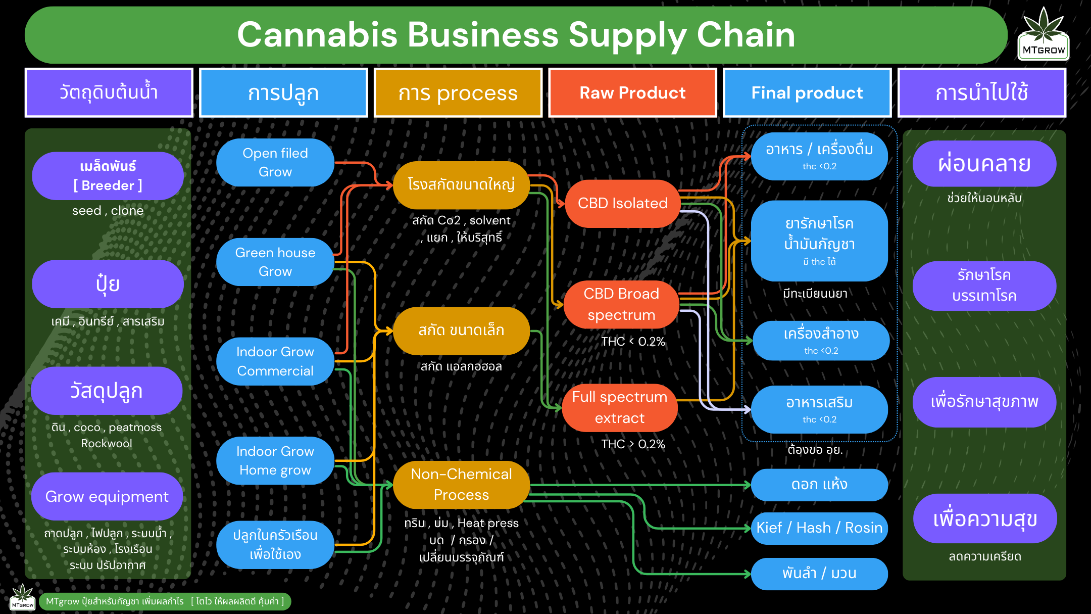 ถือเป็นหัวใจสำคัญที่ขับเคลื่อนอุตสาหกรรมนี้ให้เติบโตและขยายตัวอย่างต่อเนื่อง ตั้งแต่กระบวนการปลูก การเก็บเกี่ยว การแปรรูป ไปจนถึงการจัดจำหน่ายและการขาย แต่ละขั้นตอนต้องอาศัยความเชี่ยวชาญและการควบคุมคุณภาพอย่างเข้มงวด เพื่อให้ผลิตภัณฑ์กัญชาที่ได้มีคุณภาพสูงสุดและปลอดภัยสำหรับผู้บริโภค นอกจากนี้ ซับพลายเชนในธุรกิจกัญชายังต้องปฏิบัติตามข้อกำหนดทางกฎหมายและมาตรฐานการค้าที่เข้มงวด ซึ่งรวมถึงการรับรองแหล่งที่มาและคุณภาพของกัญชา การจัดการกับข้อจำกัดในการขนส่งและการกระจายสินค้า และการประกันว่าผลิตภัณฑ์สุดท้ายถูกต้องตามกฎหมายและเข้าถึงได้สำหรับผู้บริโภคในตลาดเป้าหมาย การบริหารจัดการซับพลายเชนอย่างมีประสิทธิภาพจึงเป็นกุญแจสำคัญที่จะช่วยให้ธุรกิจกัญชาสามารถเติบโตได้อย่างยั่งยืนและรับมือกับความท้าทายในอุตสาหกรรมได้สำเร็จ.