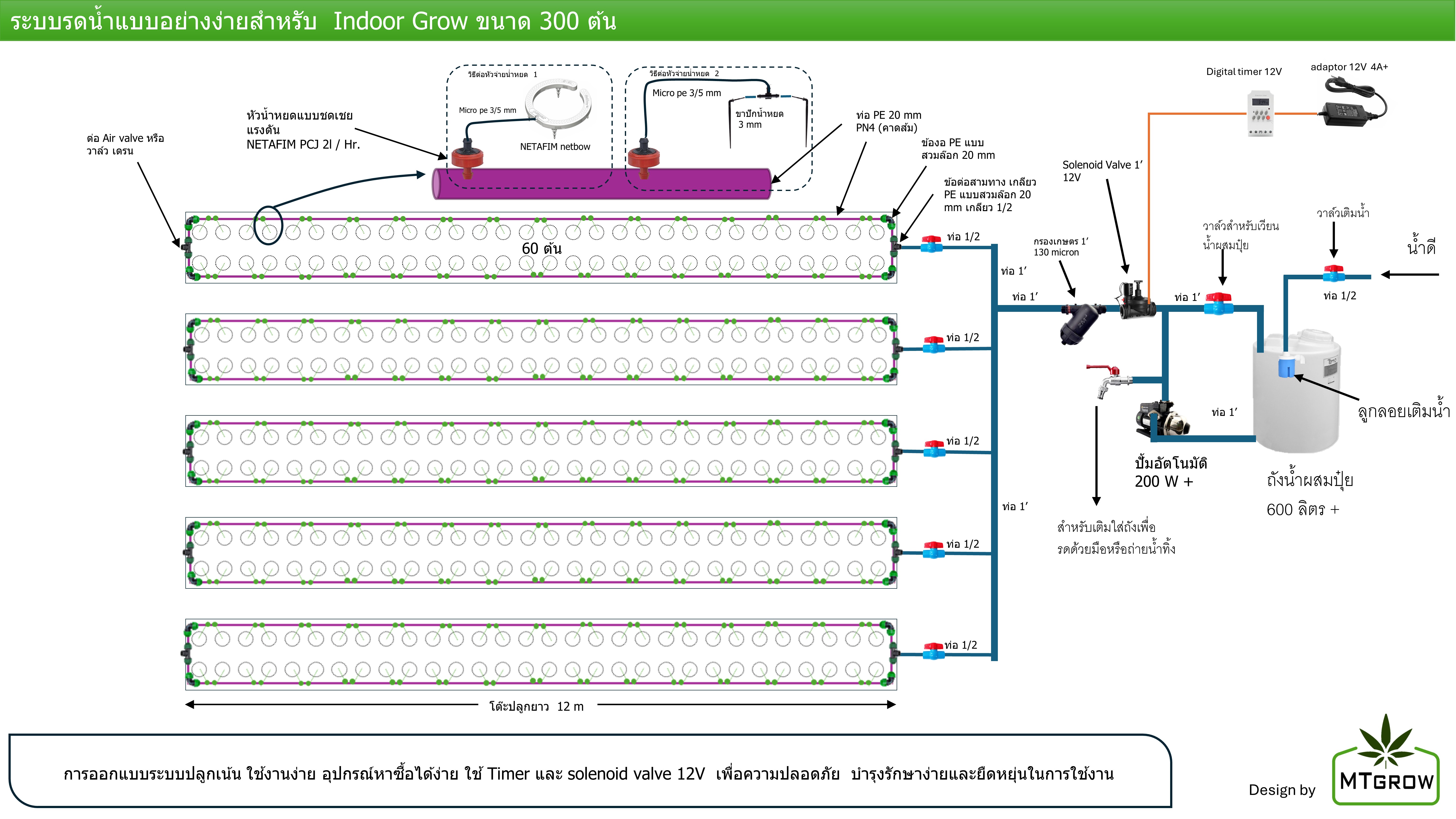 ตัวอย่างออกแบบระบบรดน้ำแบบ ขนาด 300 ต้น